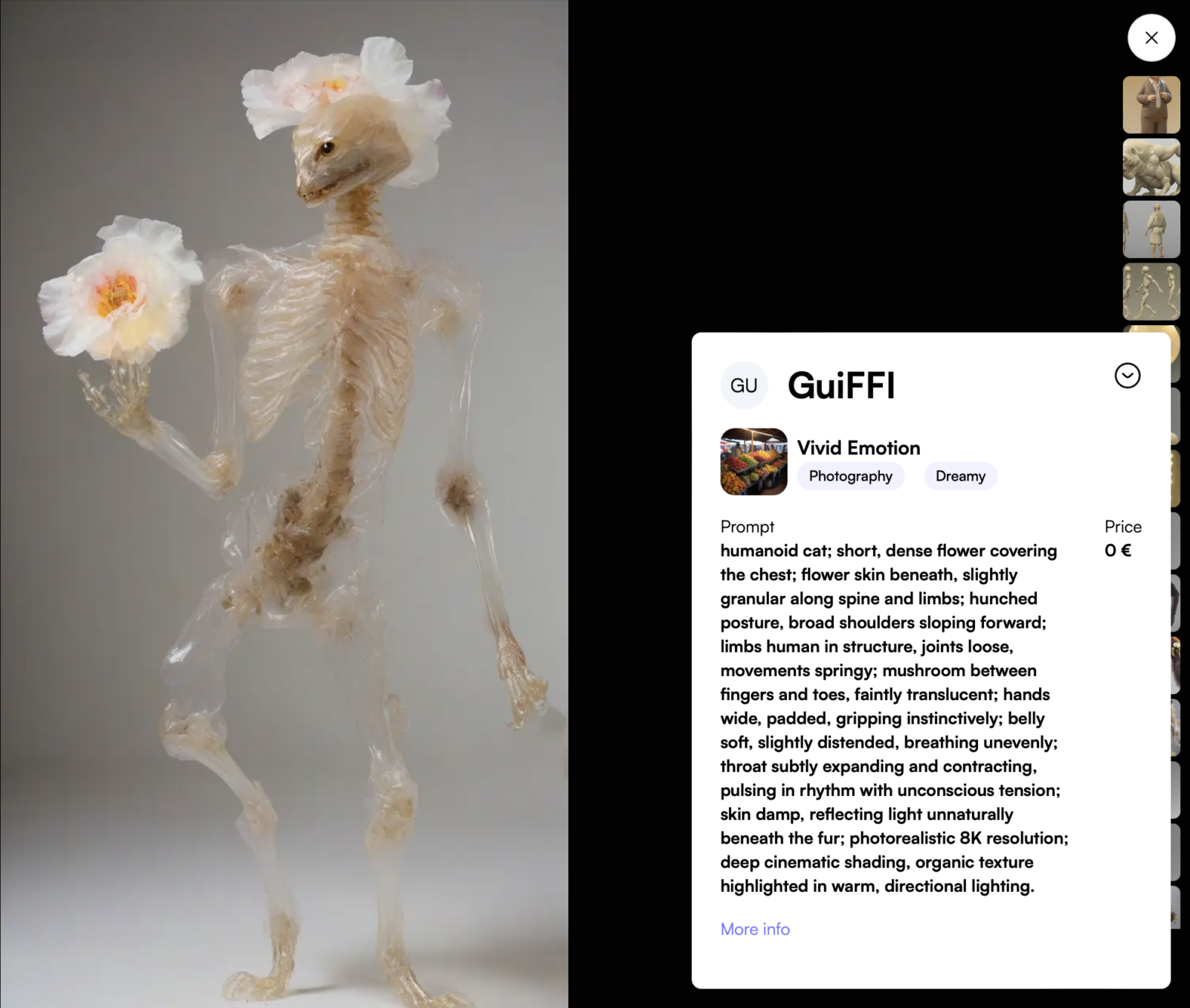 Developed during the Tending the Digital Compost workshop led by Crosslucid, the goal was to imagine a speculative world building project set in an alternate future where survival depends on radical ecological preservation. The narrative centers on a fictional tribe called Bloom that rehabilitates endangered plant species through a unique dance movement language, demonstrating a biological synchronization between humanity and nature. By utilizing open source artificial intelligence and Alais Studio, this visual universe was built using a custom generative model named Vivid Emotion.